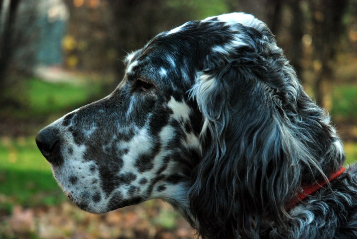 Becket jest wyjątkowo spokojnym seterem. Ma teraz 9 albo 10 lat, ale z tego co mówiła jego właścicielka, to był spokojny zawsze. Becket nie do końca mnie słuchał, właściwie to on nikogo nie słuchał… Musiałam prowadzać go na smyczy gdyż nigdy nie wiedziałam czy do mnie wróci. Nie powiem żeby to lubił, ale nie miał wyboru. Był wyjątkoo grzeczny, casem myślałąm, że mi zasnął z nudów na tej smyczy… Budził sie, gdy w okolicy były wiewiórki lub sarna. Kiedyś wyjątkowo obudził sie w okolicy jeziorka gdzie mieszkały bobry – wyladowałam butami w wodzie. Super wspominam spacery z Becketem, nawet jeśli musiałam prowadzać psa myśliwskiego na smyczy. Nieważne, bo byłam w lesie, w ciszy, w spokoju, naprawdę tam gdzie chciałam być.
