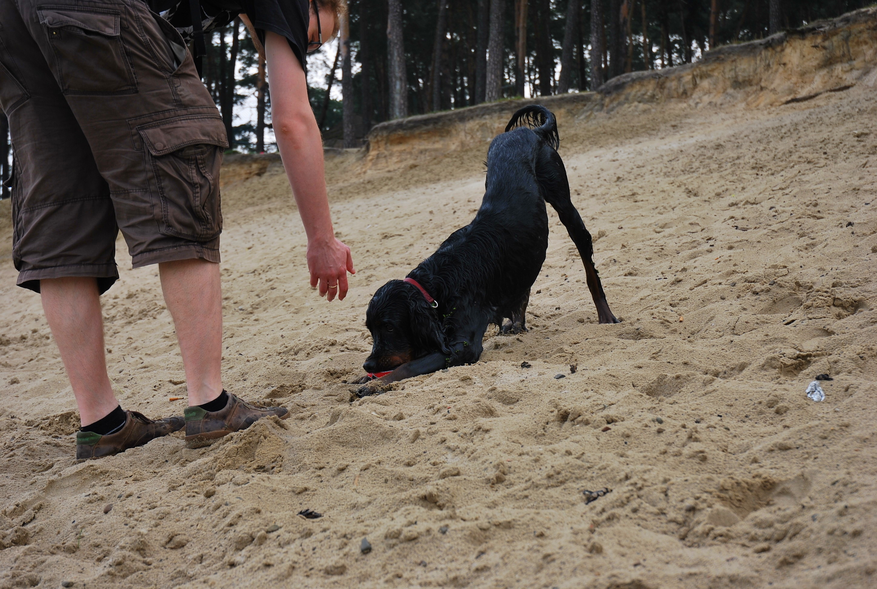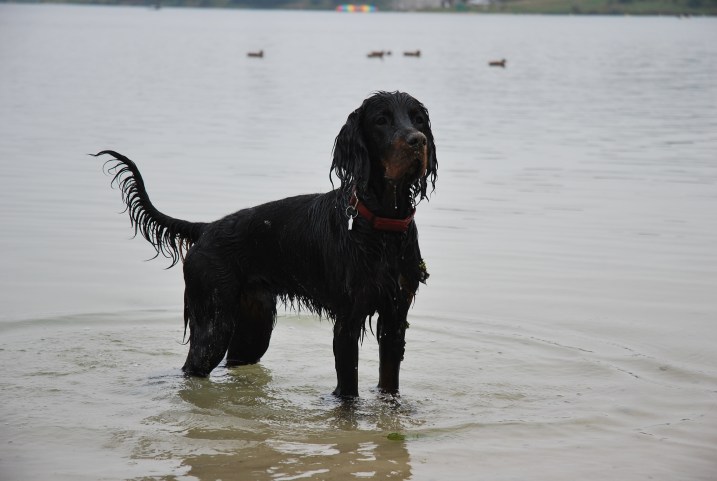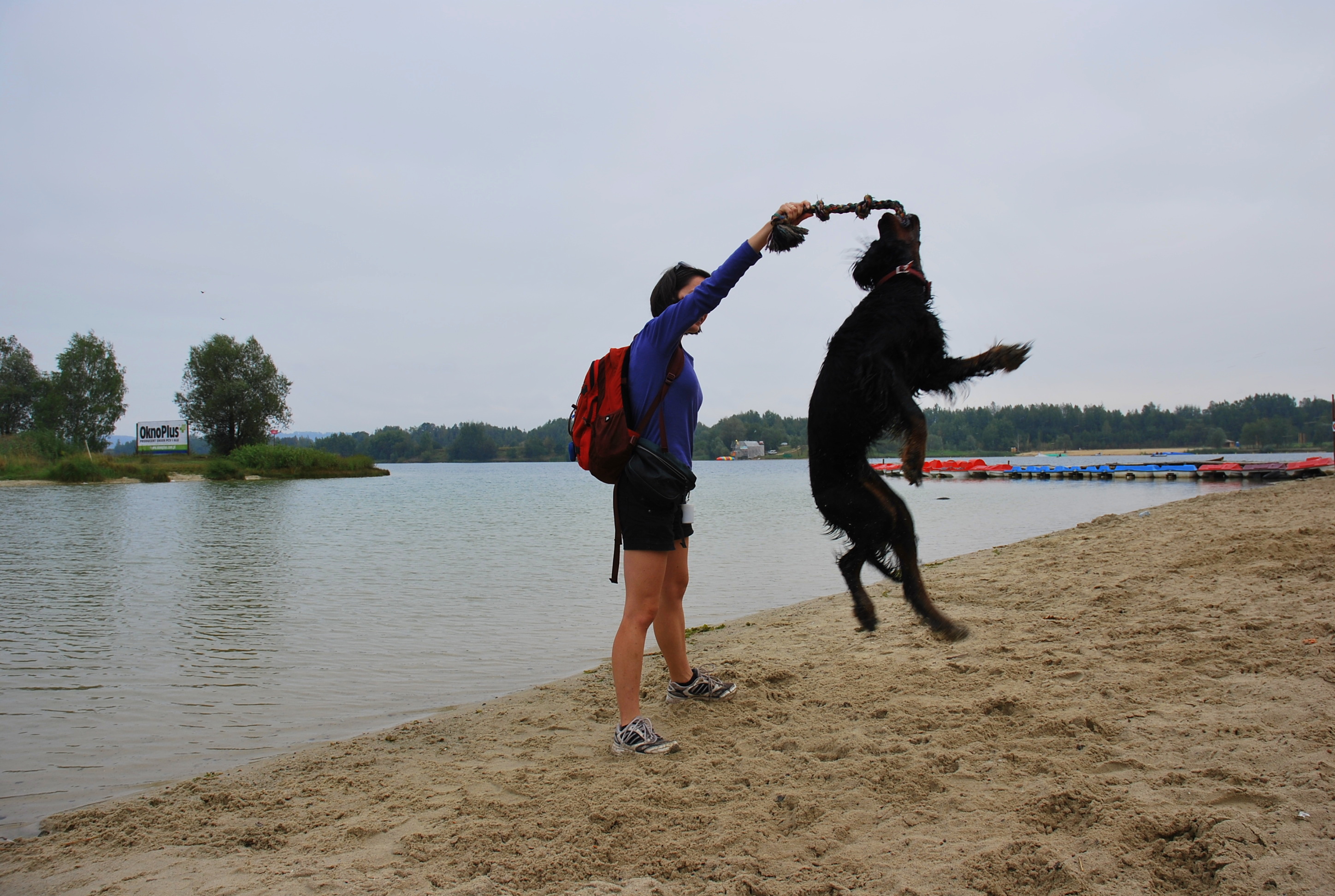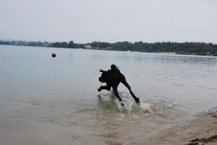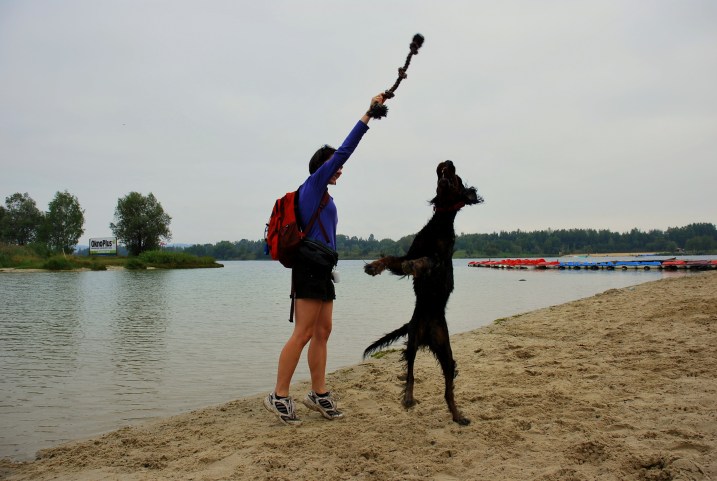 W niedzielę wstaliśmy rano i zaraz po sniadaniu poszliśmy do Budzynia, pod Krakowem, gdzie jest Zalew Kryspinów. Jak zwykle Berek ciągnął na smyczy i chciał dowodzić, a że droga tam jest daleka, to dotarliśmy nad wodę lekko poirytowani i zmęczeni. Na szczęście miejsce okazało się świetne i Berek szalał w wodzie i na plaży. Zabawa piłeczką jest niezawodna. Niestety pogoda nie była najlepsza i musieliśmy zwijać się do domciu.
