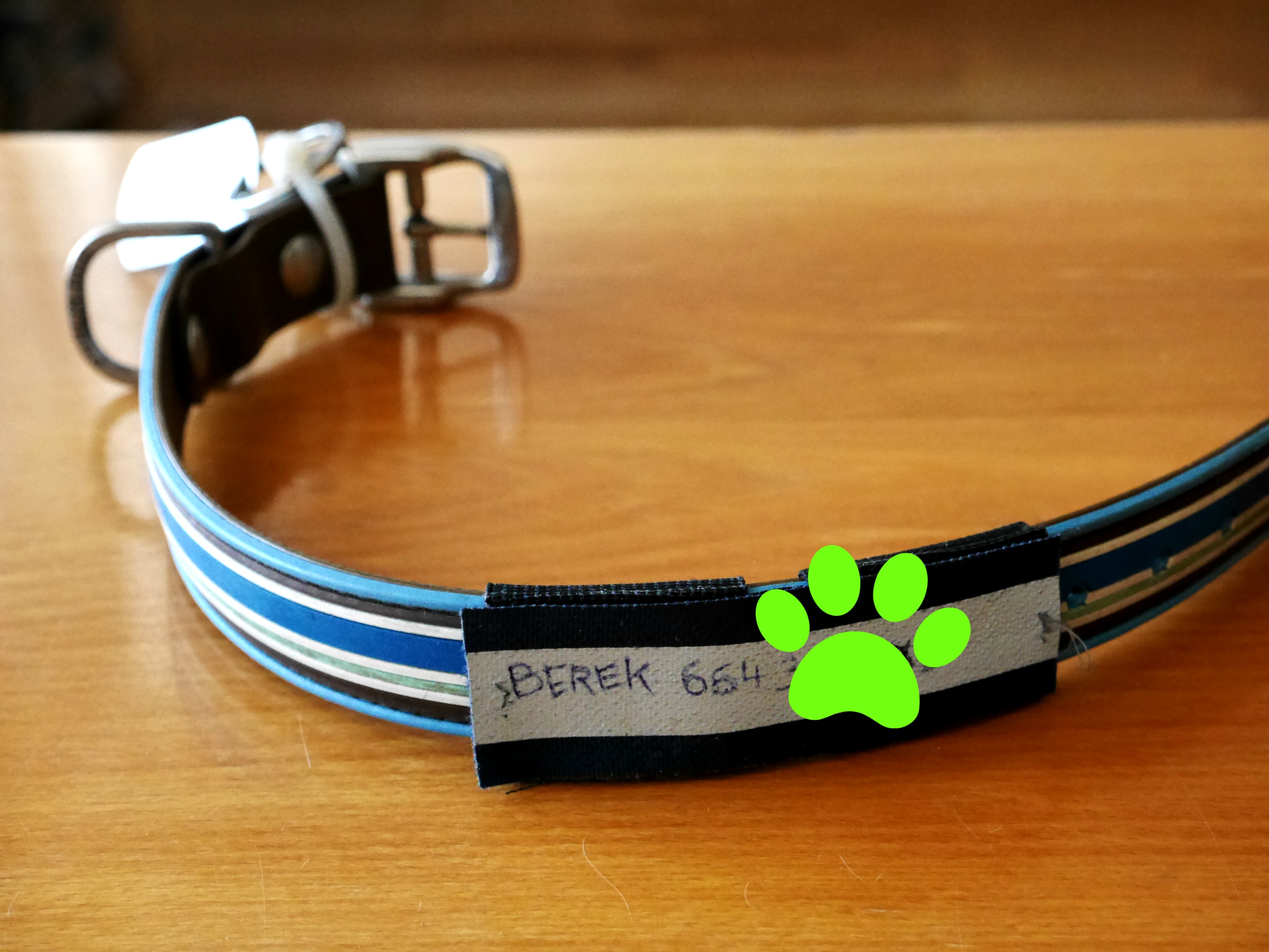 1. Myślałam o tym bo obroże z haftem to super pomysl. Jednak Berek tak syfi obroże w błocie że taka opcja odpada. Czyszczenie materiału bardzo go niszczy i po kótkim czasie materiałowe obroze wyglądają u Berka jak szmatki. My mamy obroże polimerową.