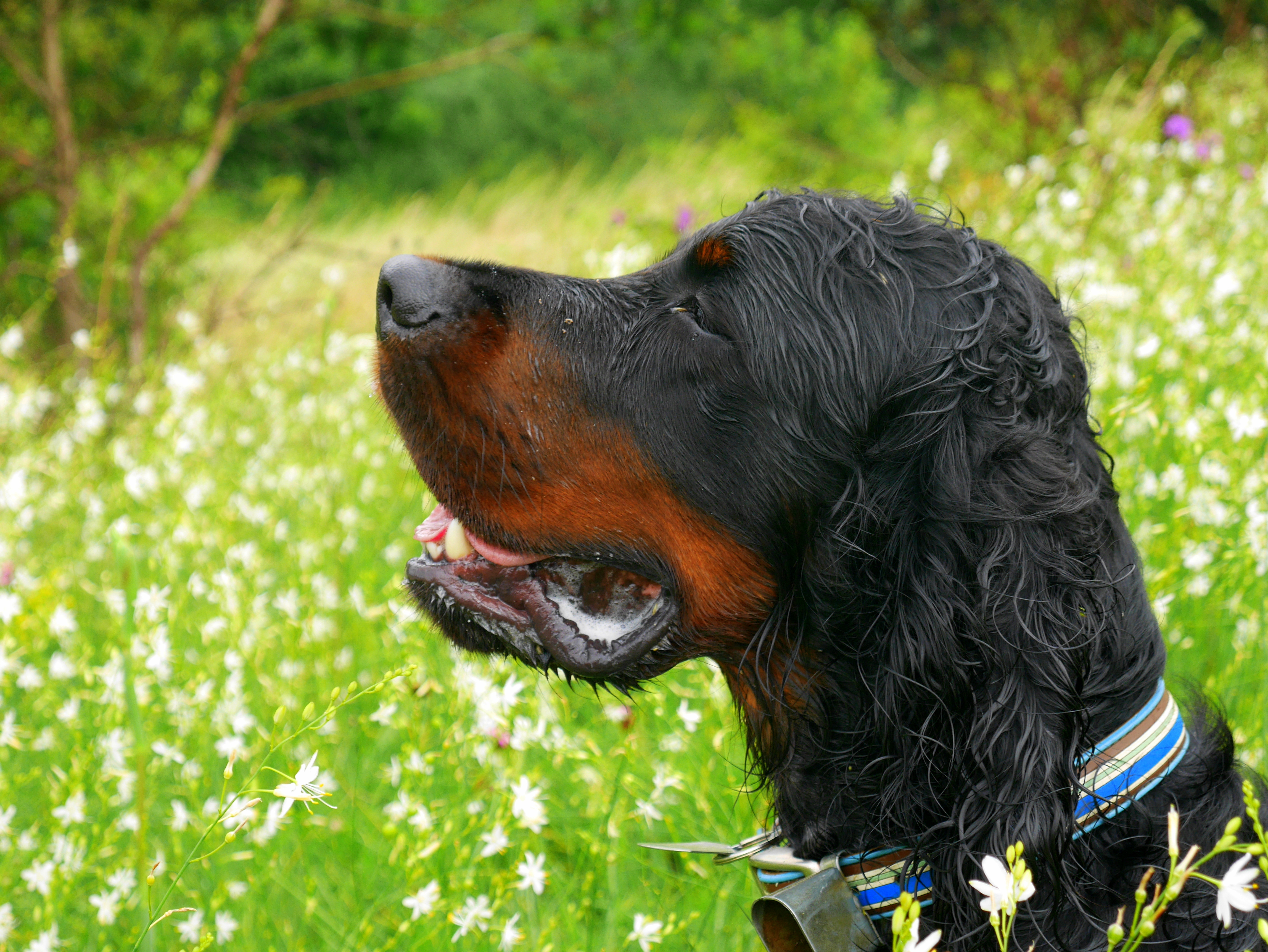 A na spacerach? Tutaj to już nie jest takie oczywiste, bo w końcu Berek jest seterem ;). Z czym to się wiąże? Mianowicie z tym, że pies chce (bo jest seterem), a nie może (bo jest milion stopni). Wiele razy pisałam już, że jak seter coś robi to robi to całym sobą. W upalne dni pojawia się problem, bo jedyne na co Ryj ma siłę to jest rozpuszczanie się w cieniu lub na glazurze w przedpokoju. Ale seterza natura nie odpuszcza, nie daje spokoju i widzę jak Ryj walczy :).