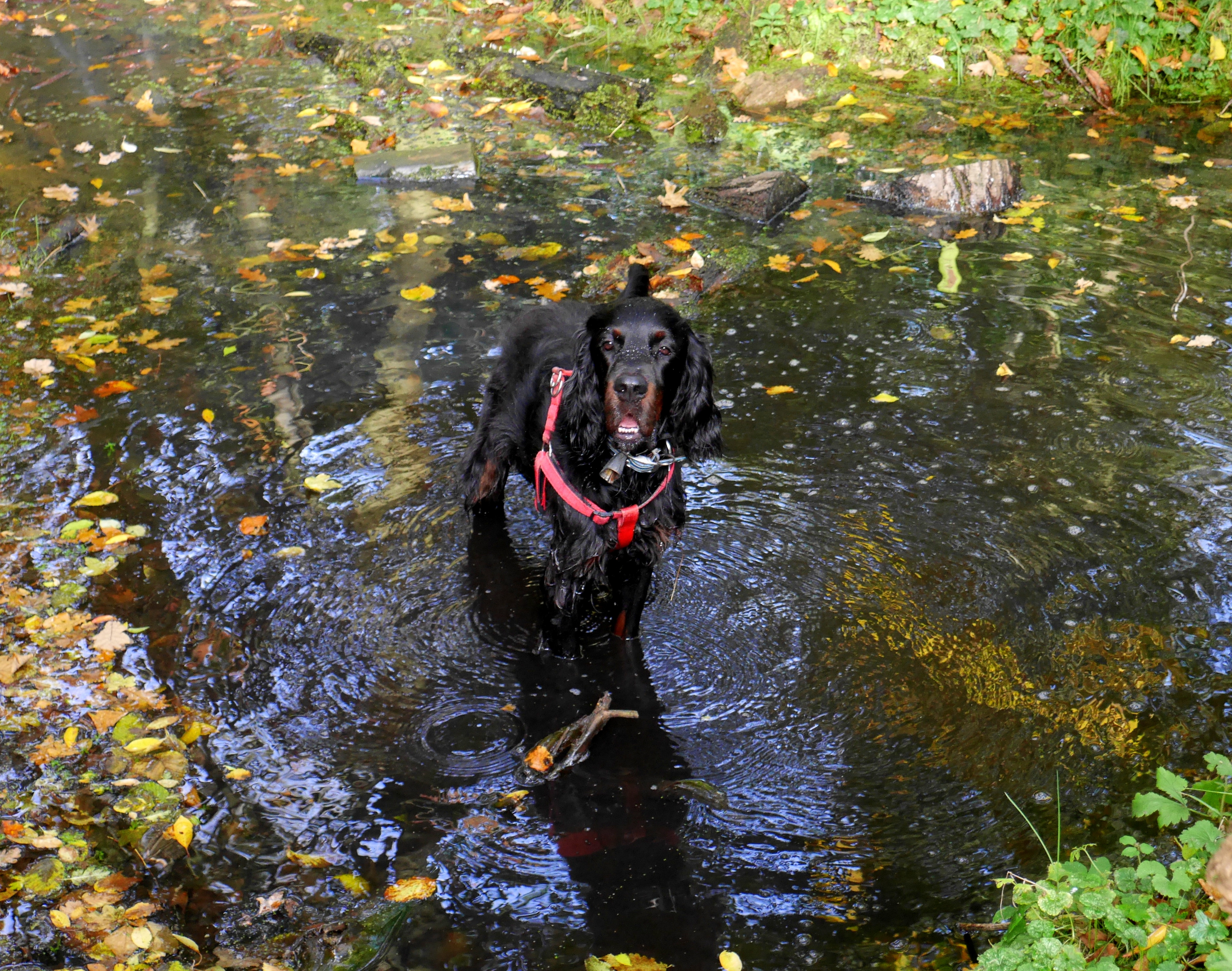 Na szczęście takie „zapachy” szybko wietrzeją i tak naprawdę nie są aż tak nieprzyjemne. Po niedługim czasie można znów powąchać psie stopy i poczuć las, ściółkę, fajny spacer i szczęśliwego psa, a nie zgniłe bajoro :). I wiecie co? Następnym razem Berek znów wejdzie do tej ‚zupy’ – jak spadnie jeszcze trochę liści i będzie nadal tak ciepło jak jest teraz to ‚zupa’ podgotuje się jeszcze kilka razy. Można będzie wyczuć nowe nuty zapachowe, dzikie przyprawy i zacznie świecić się nowymi barwami, nawet w ciemności 😉