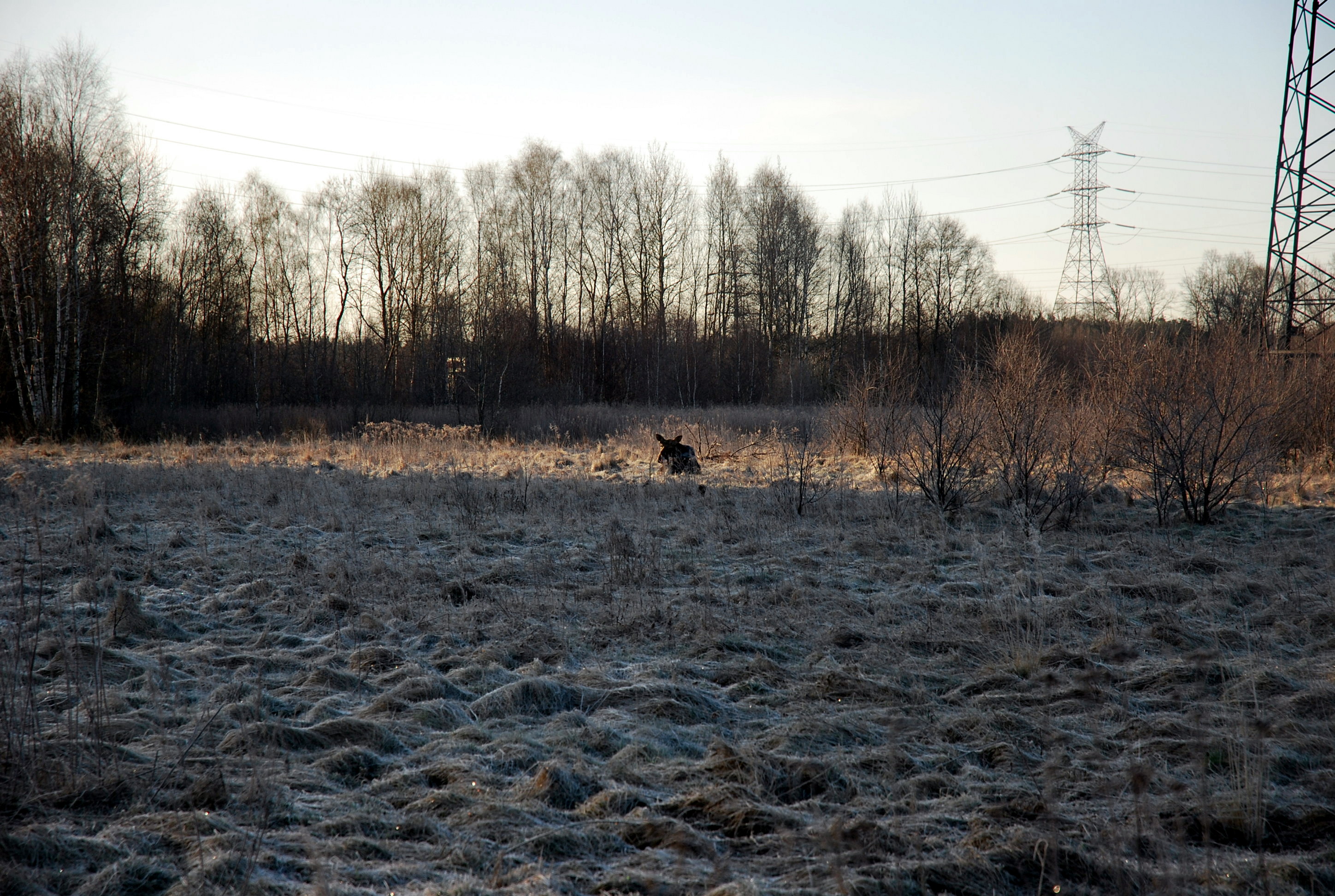 Poniżej zamieszczam zdjęcie łosia zrobione bladym świtem na polanie pod Puszczą Kampinowską, niedaleko Młocin. To pewnie ten sam łoś bo też zupełnie nas zignorował.
