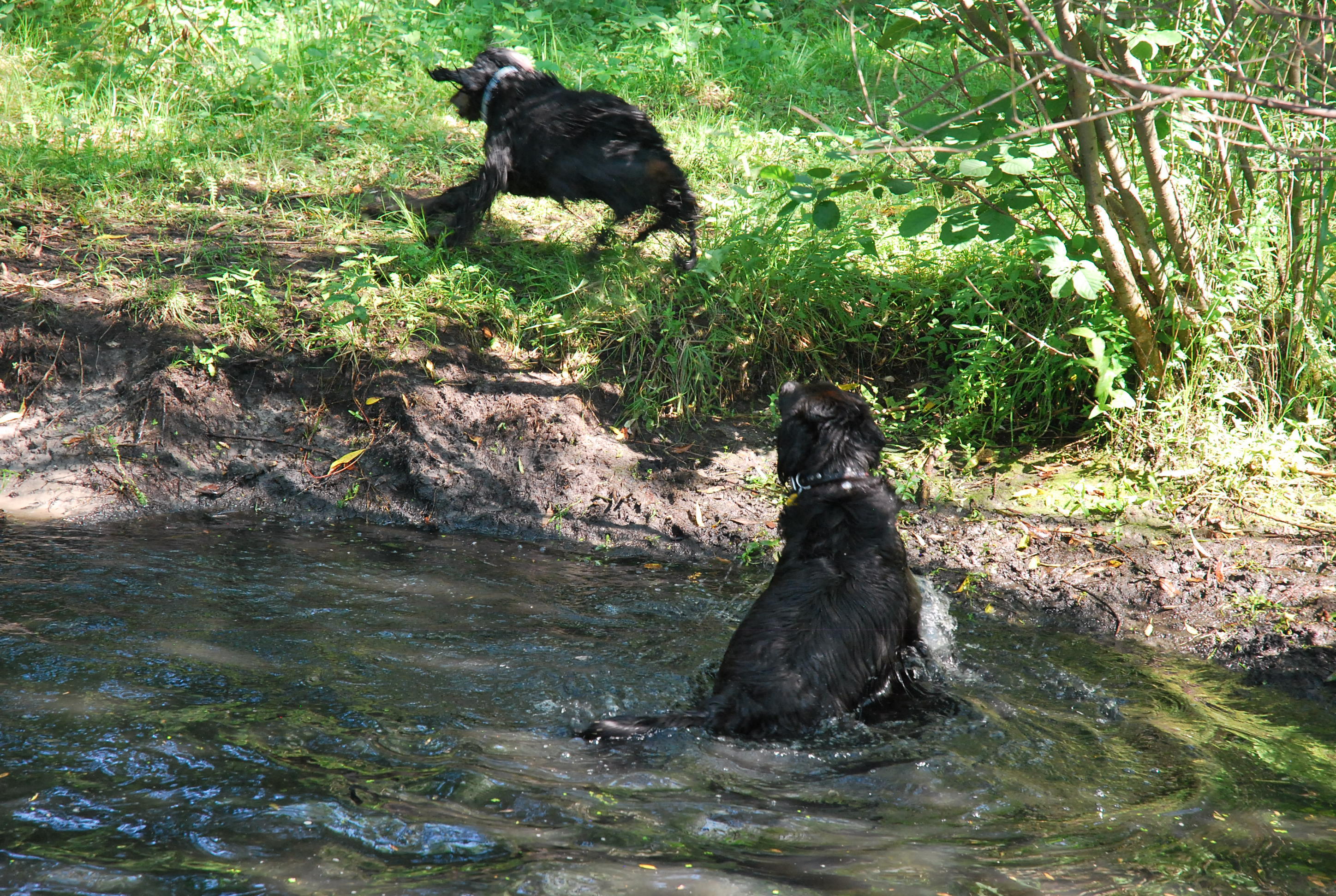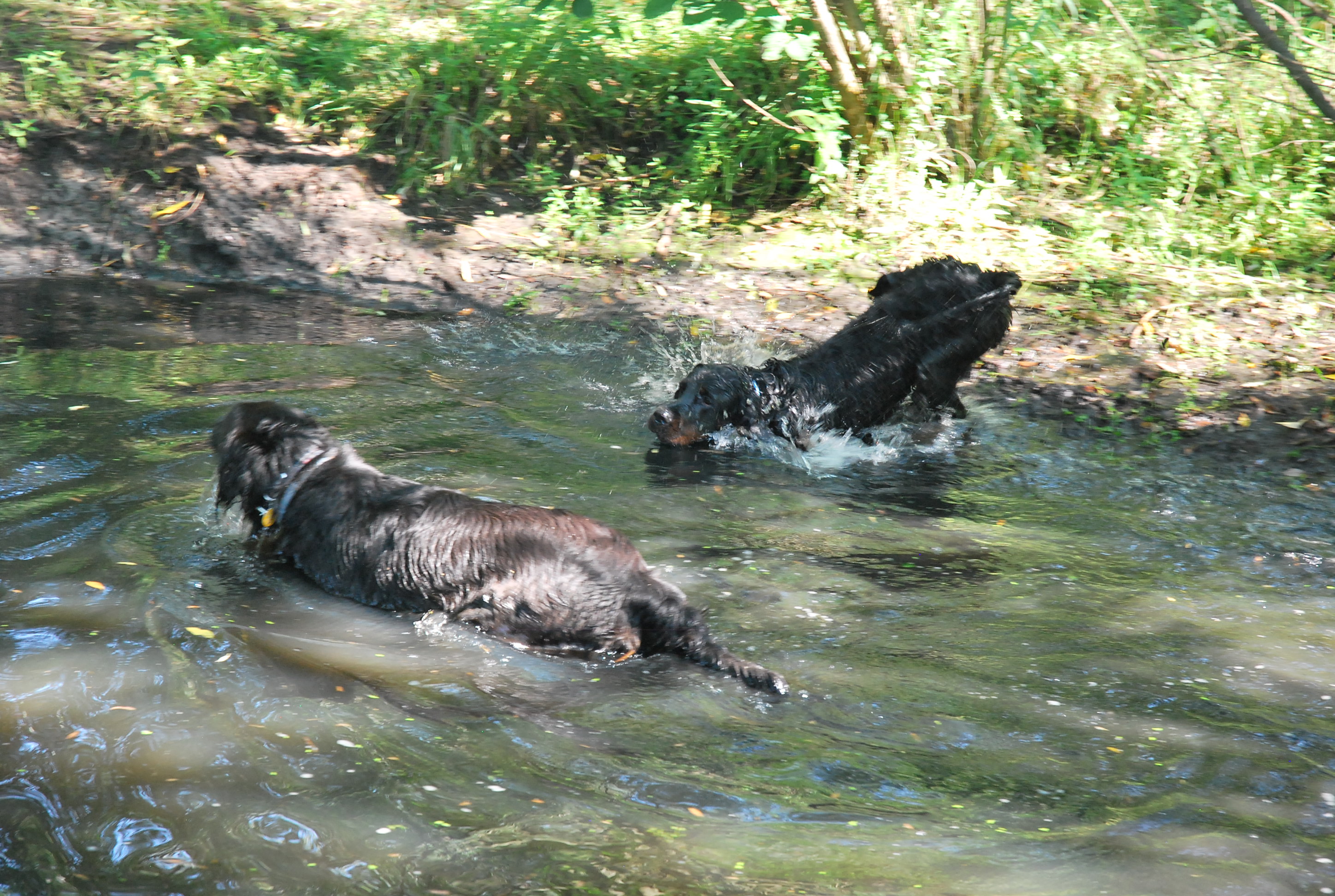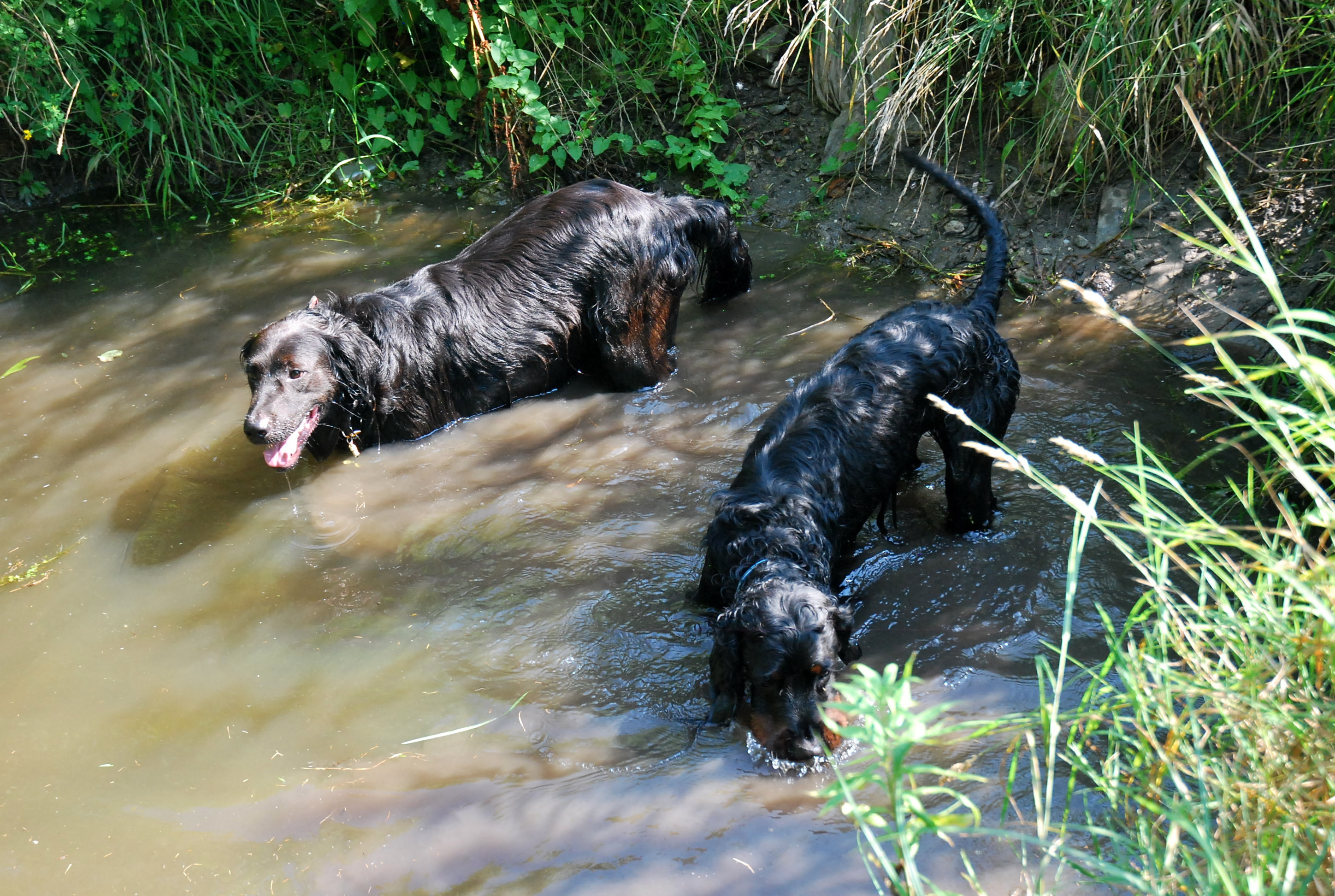 Niestety ciężko było zrobić psom statyczne zdjęcie – Berek był cały czas Berkiem, a Tahir zajmował się tropieniem. Ale udało się uwiecznić kąpiele w bajorkach. Na tych błotnych zdjęciach nie widać do końca jak piękny jest Tahir – ma nieprawdopodobną czekoladową barwę i orzechowe oczy. I co najważniejsze – ma super charakterek, bo to indywidualista z pasją :).