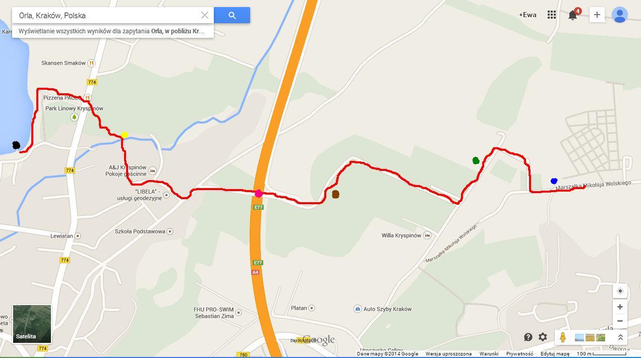 Na mapce powyżej pozaznaczałam kolorowymi punktami miejsca które znajdują się na zdjęcia w tym wpisie. Być może taka mapka przyda się tym osobom, które chcą zorientować się jak wygląda dany fragment proponowanej trasy.
