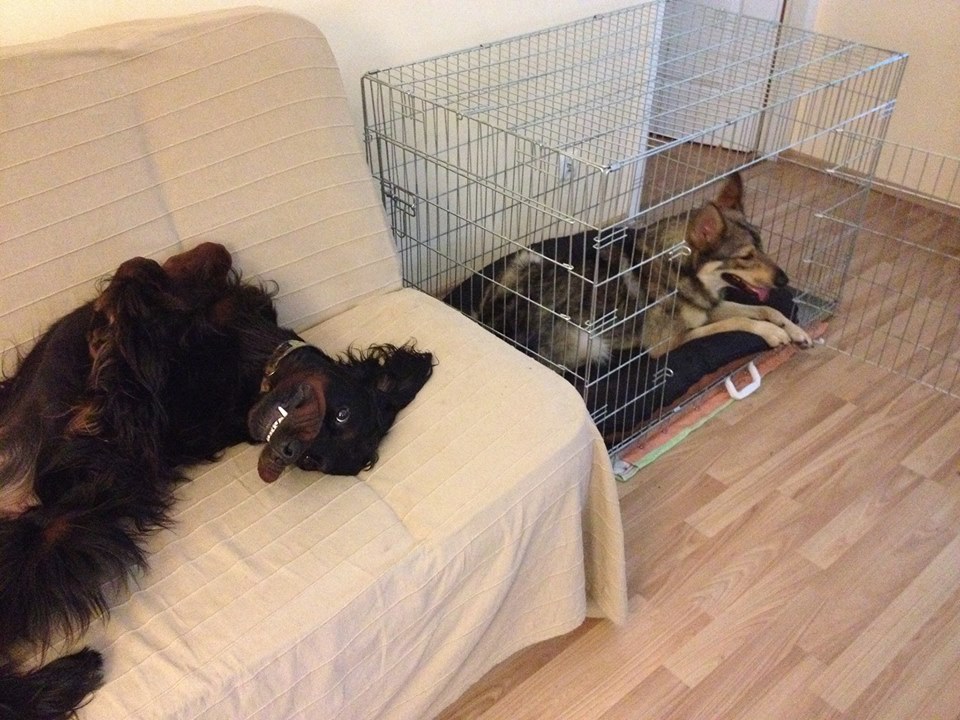 Wiem, że gordony mają tendencje do niszczenia mieszkania. Ponieważ mieszkanie wynajmujemy, zdecydowaliśmy się na przyzwyczajenie Berka do kennelu. Pies korzystający swobodnie z kennelu to mocny argument przy wynajmowaniu mieszkania. Dodatkowo, po prostu jesteśmy spokojni, bo Berek naprawdę nigdy nic nie zgryzł. Nie mam pojęcia czy ma naturę niszczyciela, bo nigdy tego nie „testowaliśmy” – gdy wychodzimy z domu śpi spokojnie w kennelu. Założyliśmy, że zlikwidowałby całe mieszkanie podczas naszej nieobecności i dzięki temu … nigdy nie musieliśmy złościć się, że zjadł nasze buty czy wypatroszył kanapę. Żyjemy szczęśliwi :).