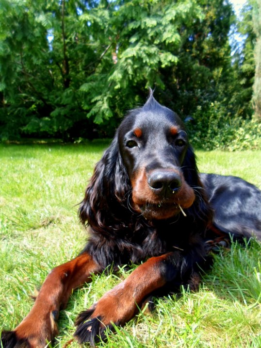 A Berek właśnie wyszedł z krzaków, miał parę malutkich, zielonych kulek na nogach, bo nie zdarzyłam go po raz setny tego dnia przeczesać. Berek nie jest psem, który spaceruje po chodnikach i trawnikach, wiec zbiera błoto, rzepy, ma liście przyczepione do brzucha i mokry nos utytłany w ziemi. I uśmiech na psim ryju J.