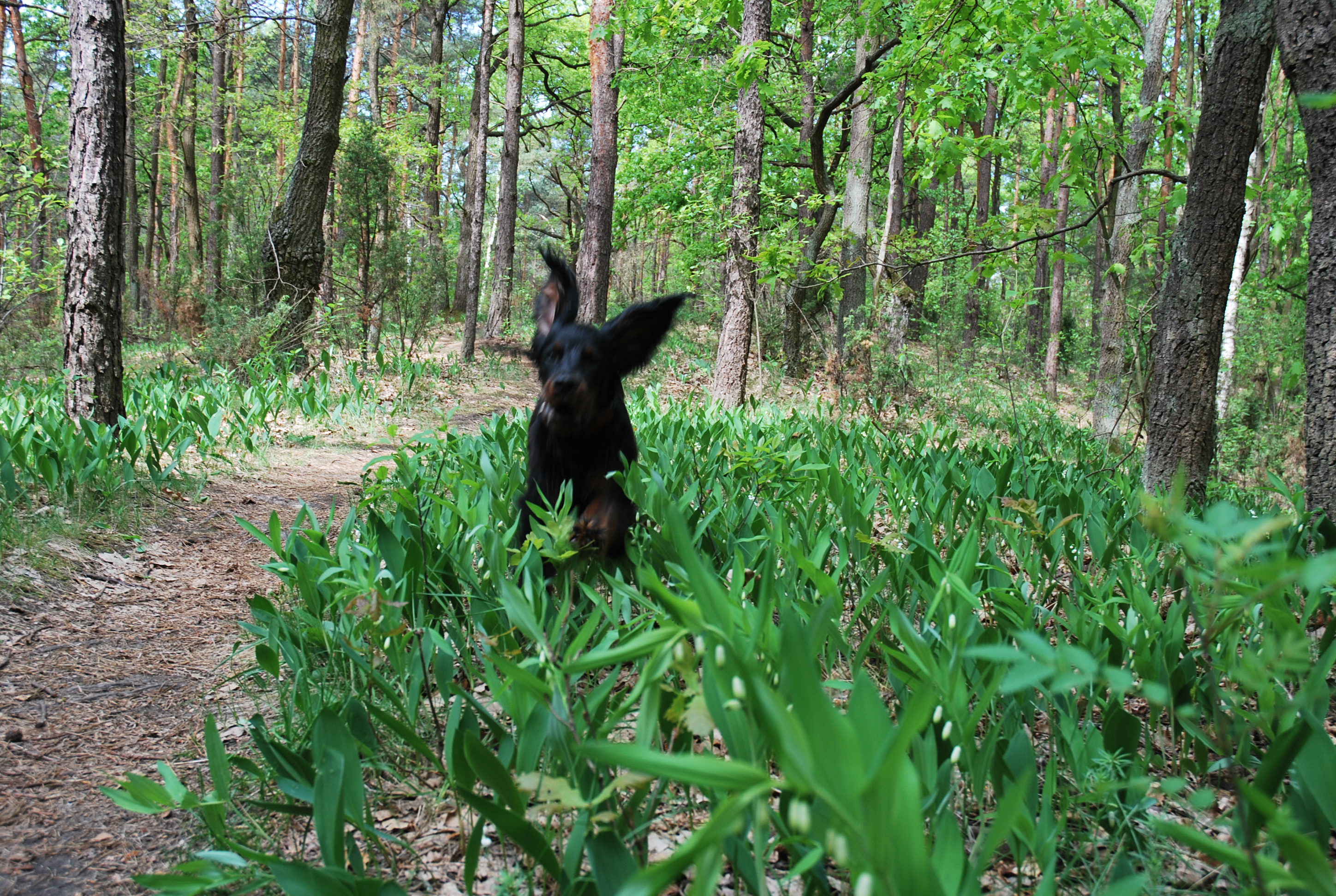 Na poprawę humoru zamieszczam parę zdjęć konwaliowych pól, na które trafiłam już jakiś czas temu z Berkiem podczas naszych spacerów po Lasku Młocińskim. Na razie jeszcze rozkwitły tylko niektóre, ale i tak już cudnie pachną. Berek jednak wolał inne leśne smrodki i przełaził po konwaliach zupełnie niewzruszony. No jak Perszeron … 🙂