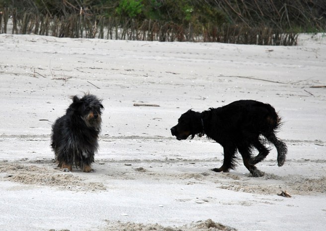 Tymczasem umieszczam kilka zdjęć z naszego niedzielnego spotkania na Starych Bielanach. Berek usilnie podrywał Teslę, aż sunia miała całe plecy w jego ślinie i piachu. Berkowi bardzo rzadko zdarza się aż tak zainteresować sunią, do tego stopnia jest to nieczęste, że jego popęd nie stanowi dla mnie problemu. Jednak Tesla bardzo mu się spodobała. Chłopak ma dobry gust – co zrobić 🙂